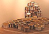 The significance of the beehive for this project is the fact that all the worker bees are females. The installation is formed of cells representing each of the women who have submitted the scarf. Each cell holds a scarf with the identity, occupation and location of the owner.